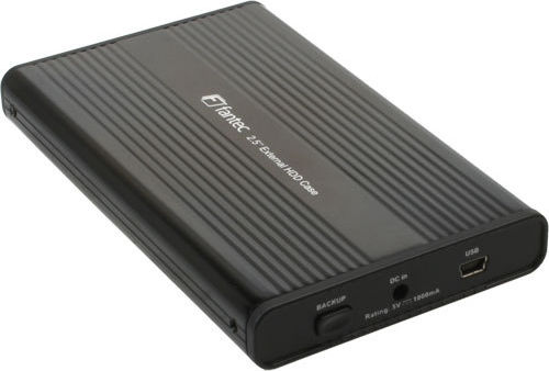 Ext Gehäuse 2.5"Zum Einbau einer 6,35cm (2,5") SATA Notebook Festplatte (max 9,5mm Bauhöhe). Blaue LED - Anzeige für Betriebsbereitschaft und Festplattenzugriff. 5,0V Stromversorgung über die USB Schnittstelle. Individuell konfigurierbare Backup Software zur automatischen Datensicherung, Synchronisation und Datenwiederherstellung über Backup-Taste. Attraktives Kunstleder-Etui in schwarz.