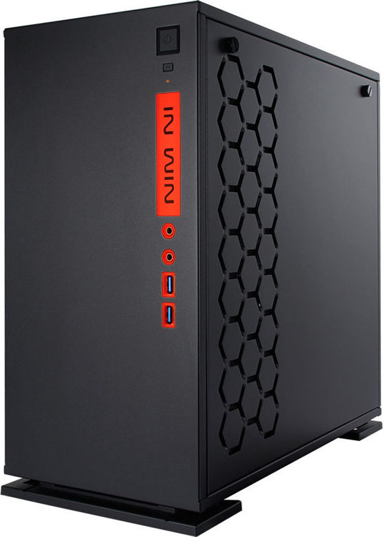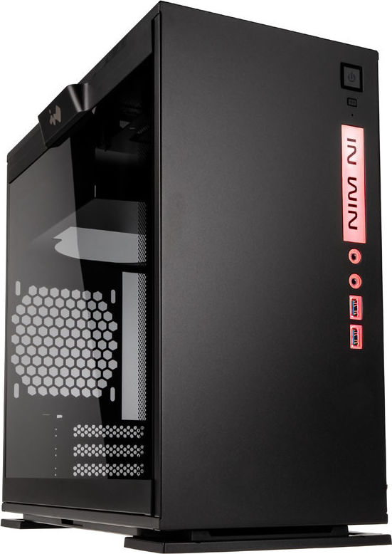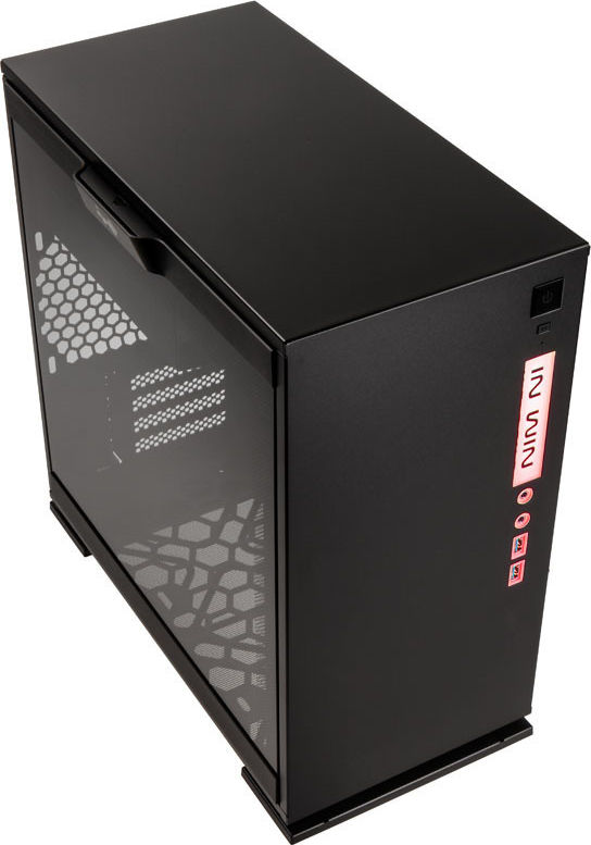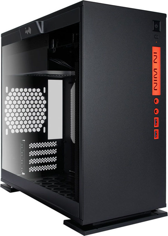 Edles schwarzes Micro-ATX-Gehäuse von InWin mit großem getönten Hartglas-Seitenfenster, edles Design & ausgefallenes Kühlkonzept, beleuchtetes I/O-Panel & separate Netzteil-Kammer