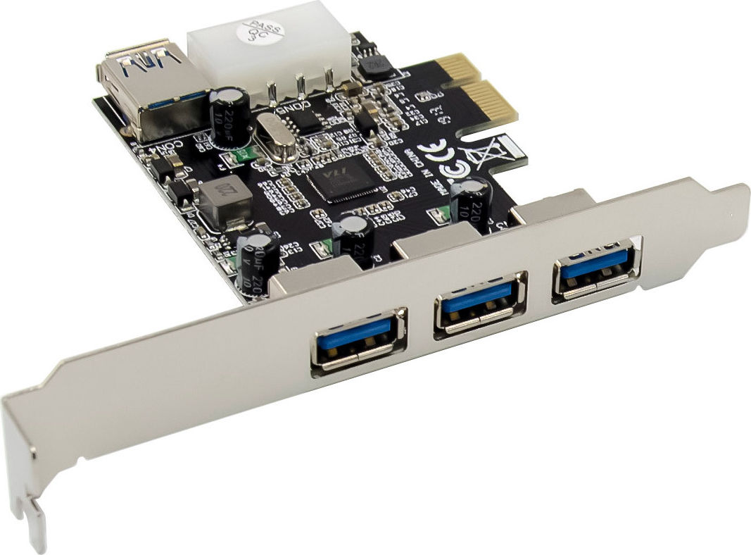 Diese InLine® PCI Express Karte ermöglicht die einfache Erweiterung eines PCs um drei externe und einen internen USB 3.2 Gen.1 Port. Dank des VIA VL805 Host Controllers bietet die Karte USB Super-Speed mit bis zu 5 Gb/s und ist vollständig abwärtskompatibel zu älteren USB-Standards.