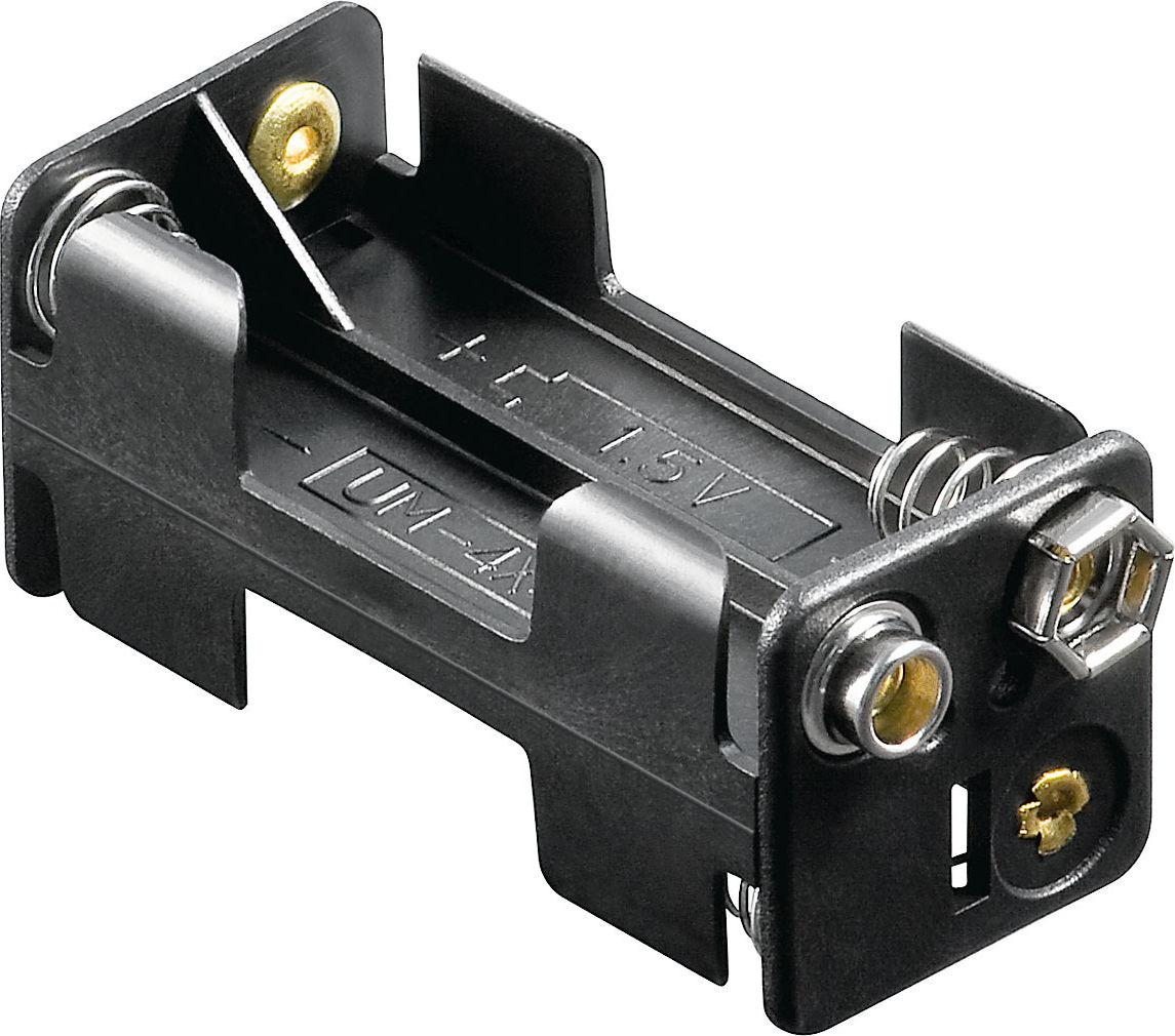 4x AAA (Micro) Batteriehalter, Schwarz - Druckknopf
