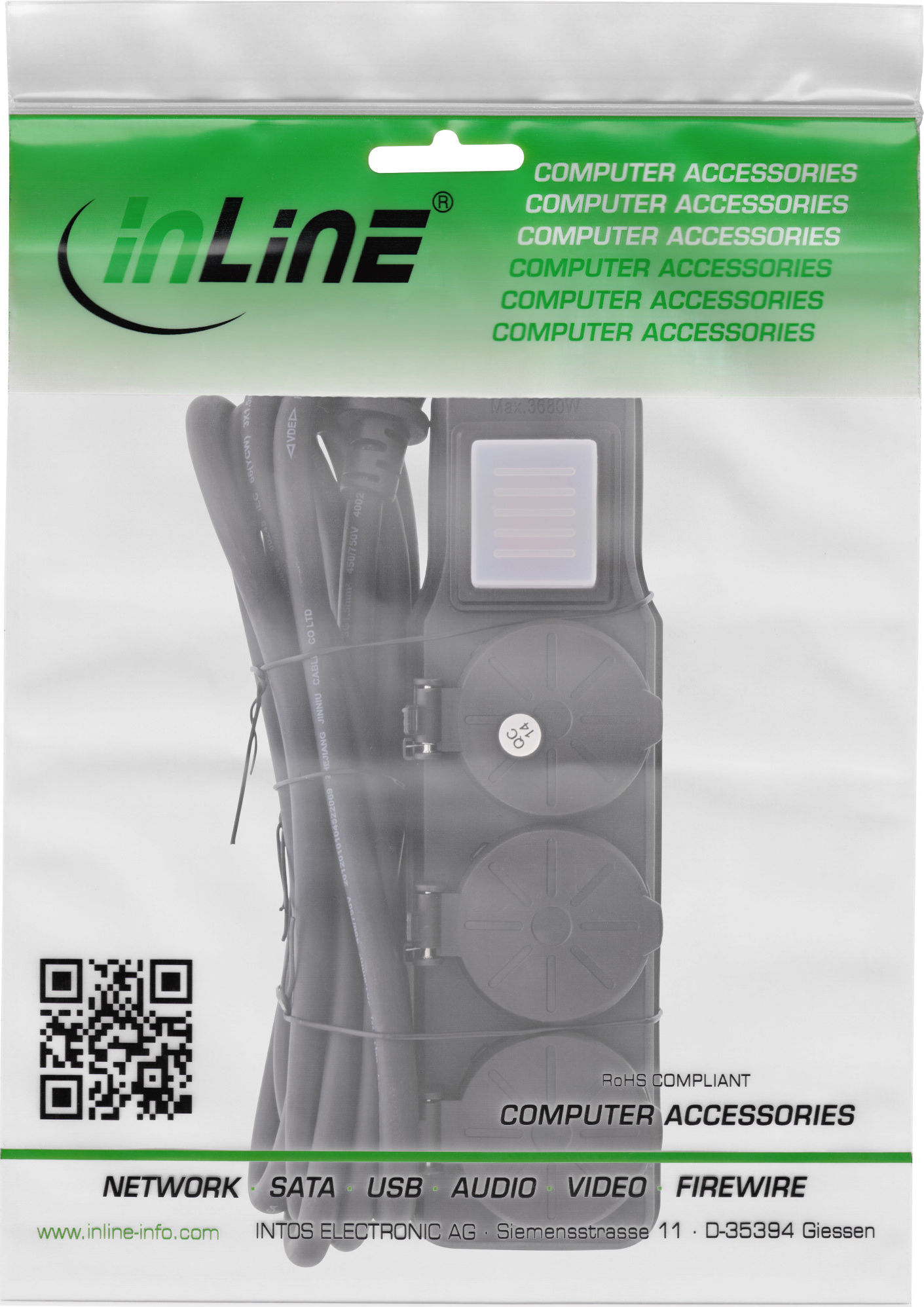 Preview: InLine® Outdoor-Steckdosenleiste, 3-fach Schutzkontakt, IP44, mit Schalter, 3m