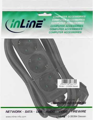 InLine Steckdosenleiste,schwarz,3-fach,3x Schutzkontakt,+Kindersicherung
