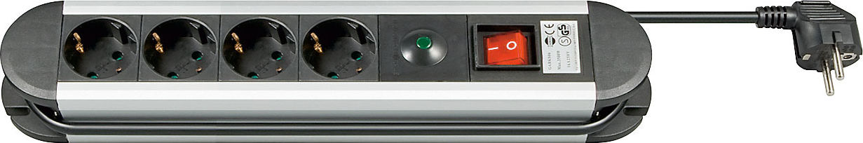 Steckdosenleiste mit Überspannungsschutz 1,4 m, Silber-Schwarz - 4 Schutzkontaktbuchsen, mit Überspannungsschutzanzeige