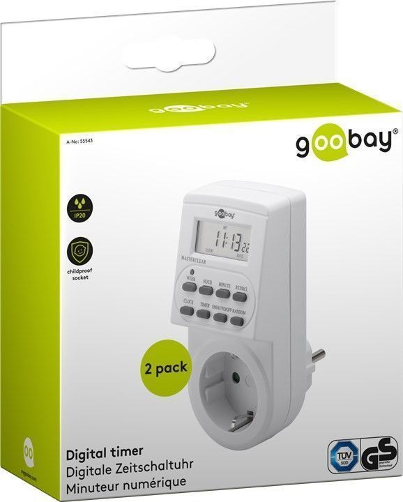 Goobay 2er-Set: Digitale Zeitschaltuhr, Weiß, Hängbarer Karton - präzise und komfortable Steuerung von elektronischen Geräten