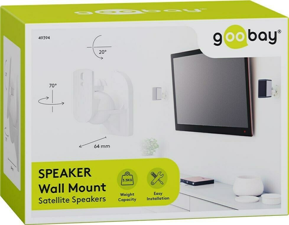 Goobay Basic Lautsprecher Wandhalterung universal, Weiß, Stehender Karton - universal Boxen Halter zur Wandmontage, (schwenkbar und neigbar) für Lautsprecher bis max. 3,5
