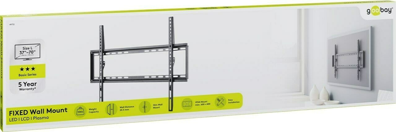 Goobay Basic TV-Wandhalterung Basic FIXED (L), Schwarz, Stehender Karton - für Fernseher von 37'' bis 70'' (94-178 cm) bis 35kg
