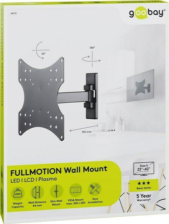 Goobay Basic TV-Wandhalterung Basic FULLMOTION (S), Schwarz, Stehender Karton - für Fernseher von 23'' bis 42'' (58-107cm) , vollbeweglich (schwenkbar und neigbar) bis 20