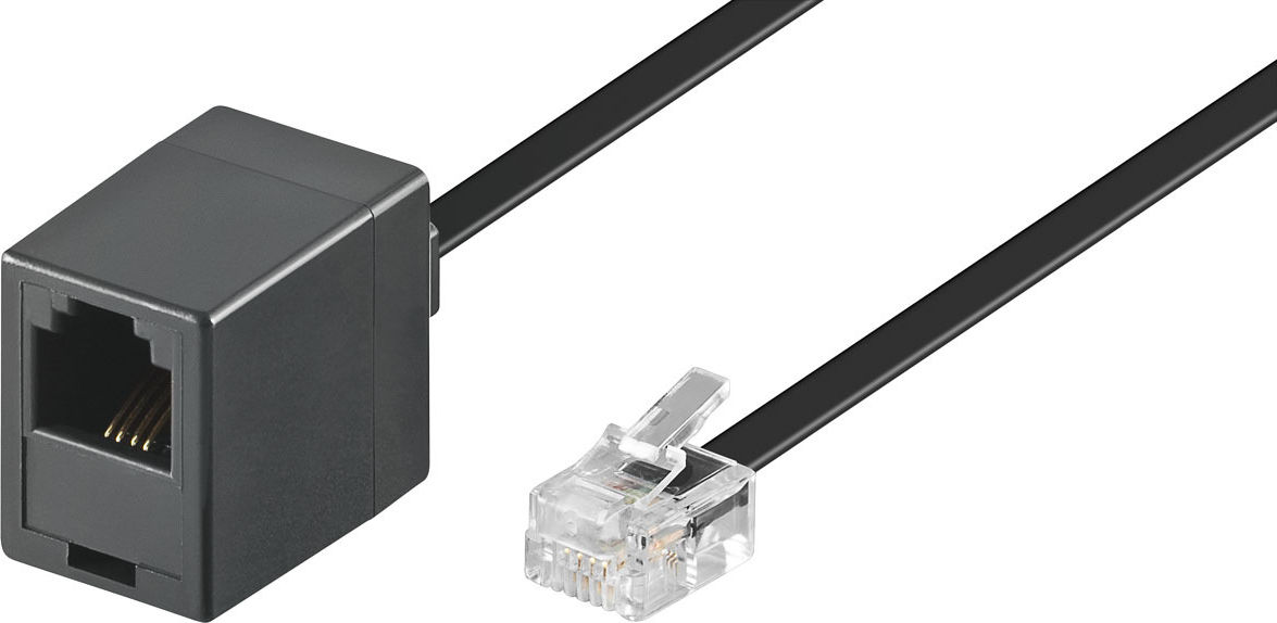 Goobay Modularverlängerungskabel, Schwarz, 3 m, Plastiktüte - RJ11/RJ14-Stecker (6P4C) > RJ11-Buchse (6P4C)
