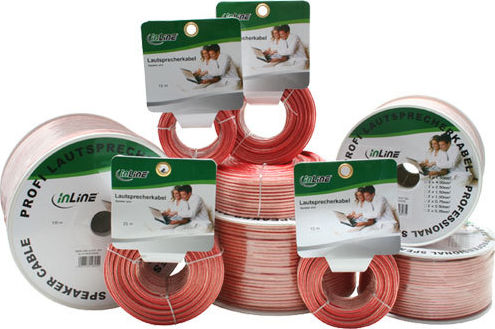 Lautsprecherkabel, InLine®, 2x 2,5mm², CCA, transparent Lautstprecherkabel, hochflexibel Transparenter Mantel, mit Kennader Material CCA (Kupfer-Aluminium Legierung) Querschnitt 2x2,5mm² Aufbau: 2x 7x 20x 0.15mm² Aussenabmessungen: ca.4x8mm auf KunststoffrolleLautsprecherkabel, InLine®, 2x 2,5mm², CCA, transparent