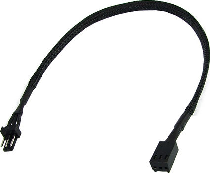 Verlängerungskabel zum Anschluss von 3-pin Lüfter (CPU-Kühler, Gehäuselüfter usw.) an Mainboardanschluss oder anderem Lüfter Anschluss (3Pin Molex) ca. 32 cm lang. Inklusiv Tachosignal Weiterleitung. Ein weißer Sticker am Kabel zeigt an, welches das Tachosignal überträgt. Sleeving: Dieses Kabel ist nicht nur zweckmäßig, sondern auch noch optisch sehr ansprechend. Das umspannende Netz, was die eigentlichen Kabel umwickelt, ist sehr dicht und bietet genau den Effekt den die Profisleever wollen: Kompletter Umbau der Kabel, um die Einzigartigkeit seines Systems noch besser zu betonen! Besonderes Augenmerk wurde auf die Kombination von der Kabelummantelung (dem Sleeve), des Steckers und der Schrumpfschläuche geachtet, dass sie ein einheitliches Bild ergeben. Sets: Phobyas Ziel ist es, den Hobby und Profi Casemoddern hier ein Stück weit entgegen zu kommen. Sleeving ist viel Arbeit und kostet viel Zeit, daher kann man sich nun mit den Kabeln von Phobya sein komplettes System so umbauen wie man es gerne möchte, nur durch einfaches Kabelwechseln. Technische Details: Anschlüsse: 3 Pin Verlängerung Farbe: schwarzer Sleeve, schwarzer Stecker, schwarzer Schrumpfschlauch Abmessungen: 30cm RoHS konform Lieferumfang: 1x Phobya Verlängerung 3Pin Molex 30cm - Schwarz Dieses Produkt wurde für Sie getestet: Aquainfos Tech-Review Overclockingstation