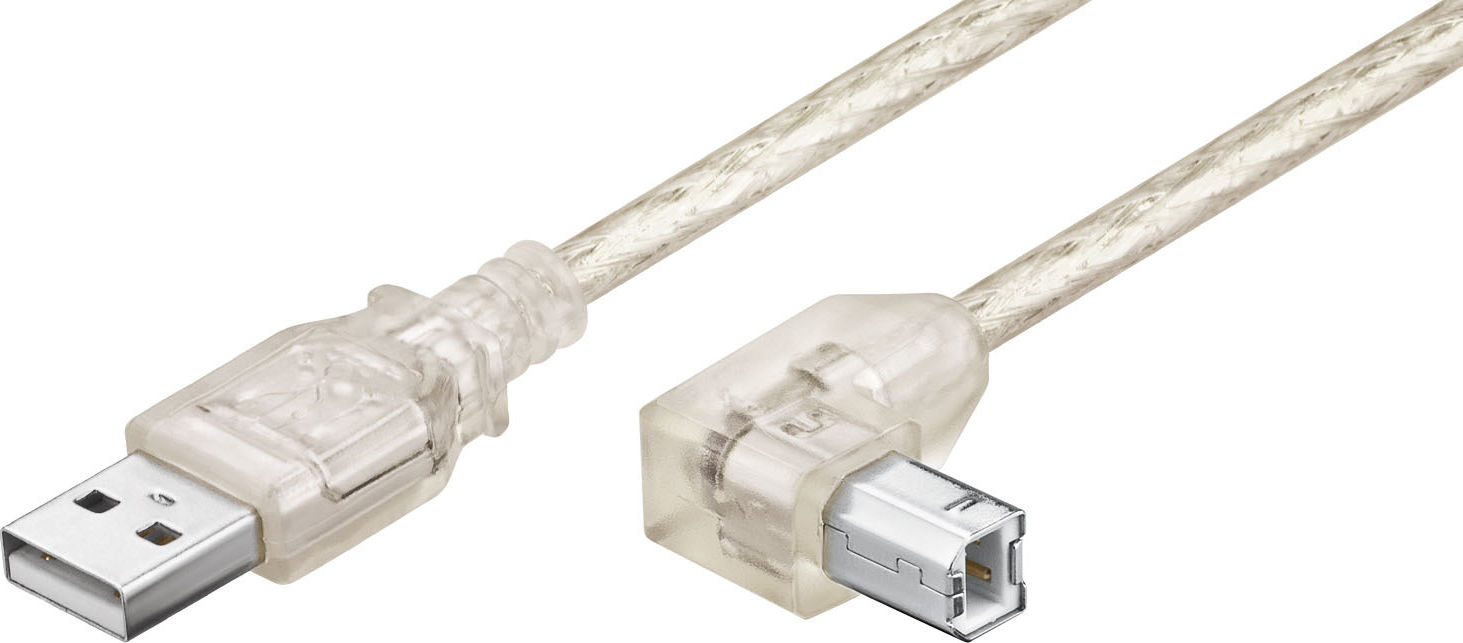 USB 2.0 Hi-Speed Kabel 90°, Transparent, 1 m - USB 2.0-Stecker (Typ A) > USB 2.0-Stecker (Typ B) 90°