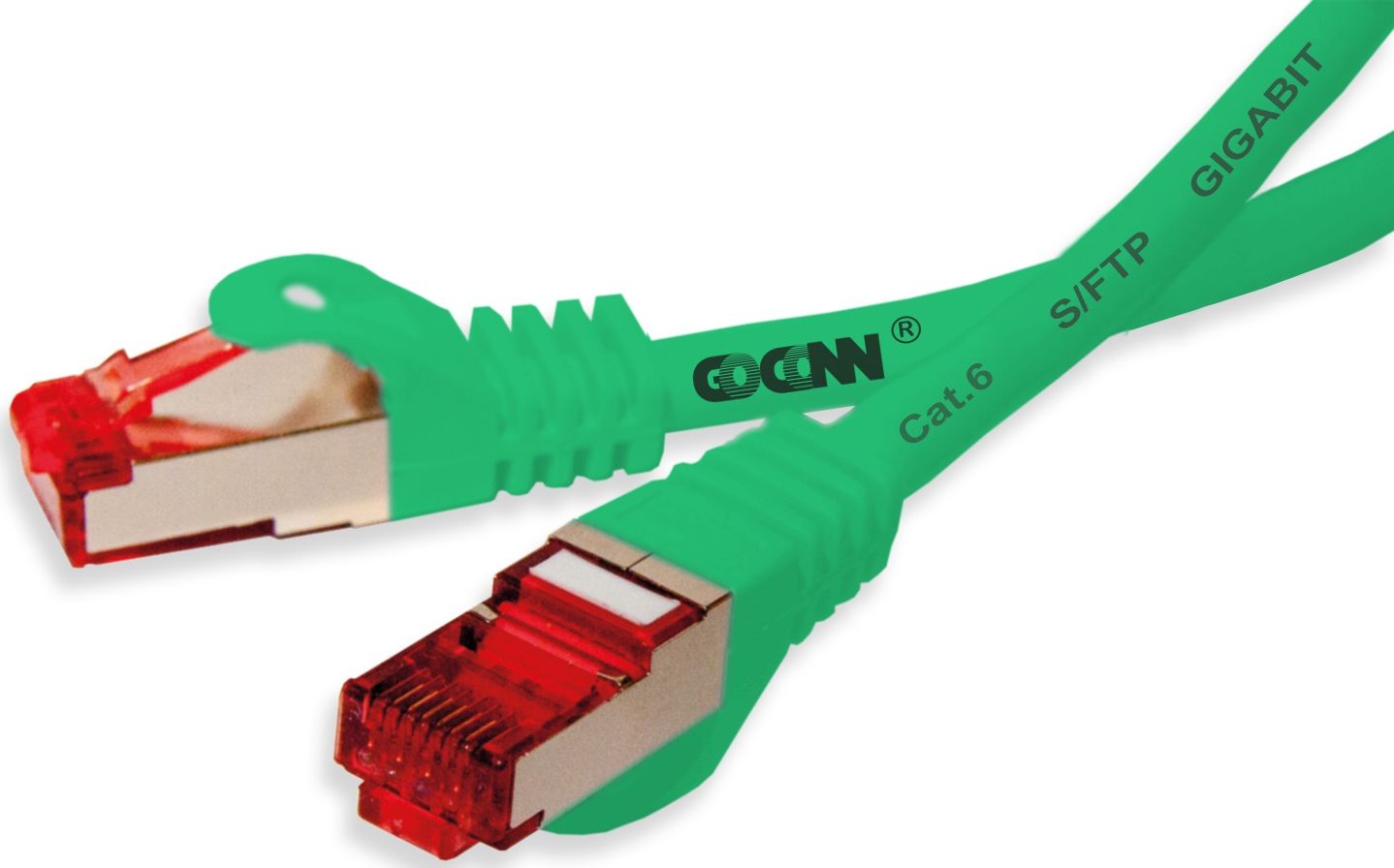 GoConn Patchkabel Cat6 15m grün Rastnasenschutz S/FTP PiMF 250MHz 2xgeschirmt