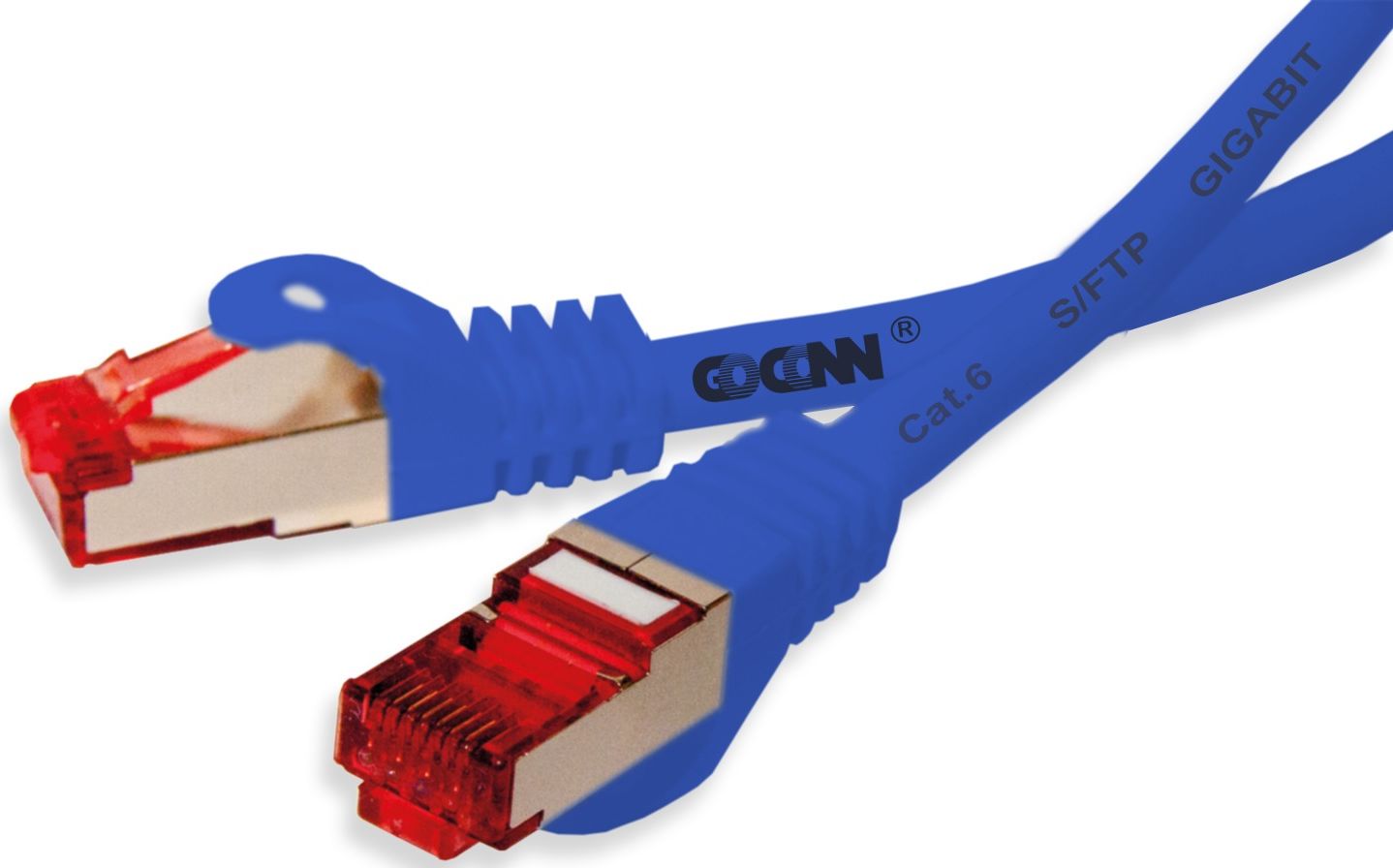 GoConn Patchkabel Cat6 25cm blau Rastnasenschutz S/FTP PiMF 250MHz 2xgeschirmt