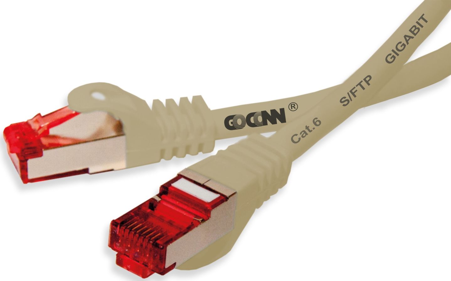 GoConn Patchkabel Cat6 50cm grau Rastnasenschutz S/FTP PiMF 250MHz 2xgeschirmt