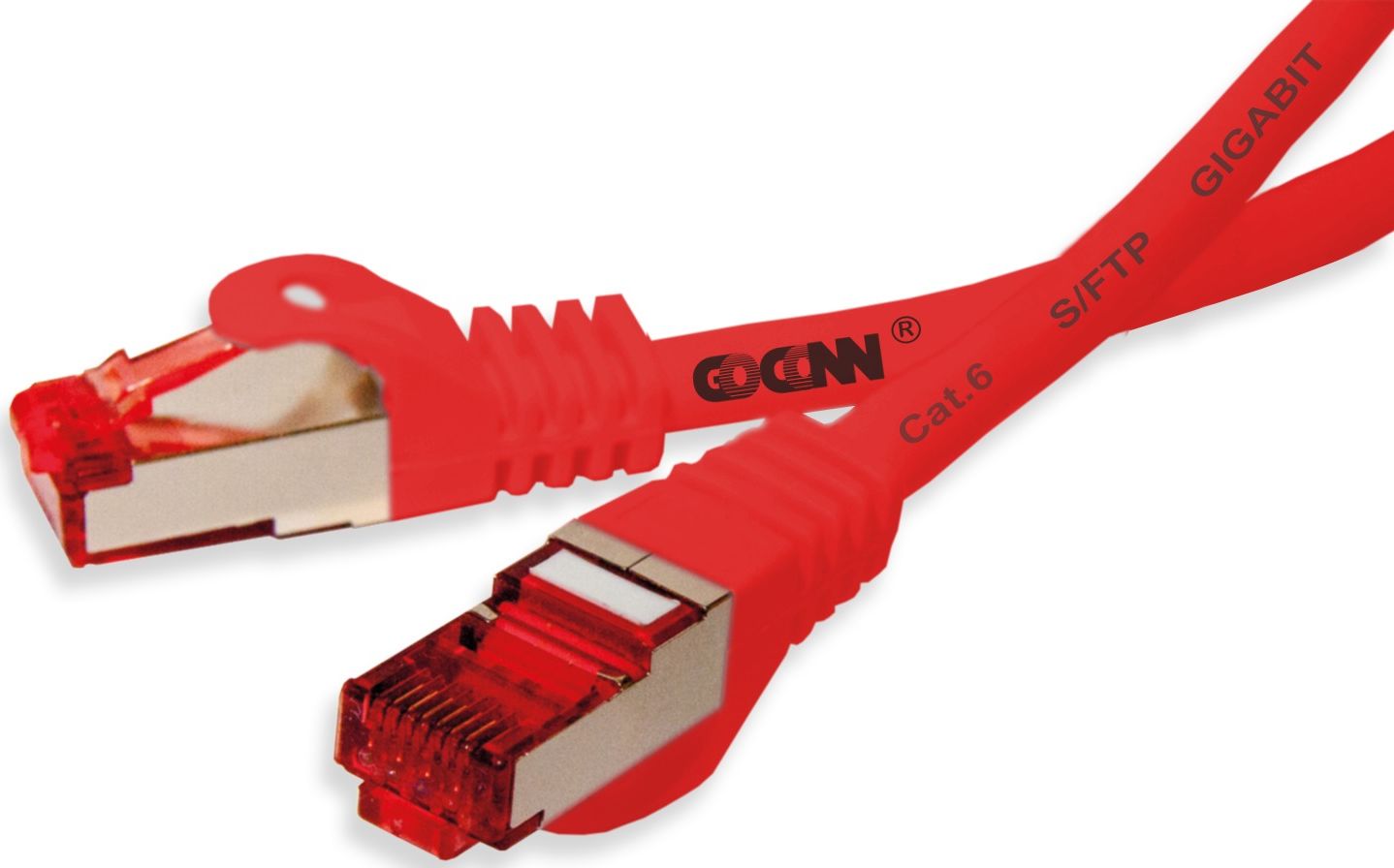 GoConn Patchkabel Cat6 7,5m rot Rastnasenschutz S/FTP PiMF 250MHz 2xgeschirmt