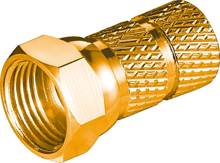 Goobay Aufdreh-F-Stecker 6,5 mm, Kupfer, Staubschutztüte - Kupfer-vergoldet, breite Mutter