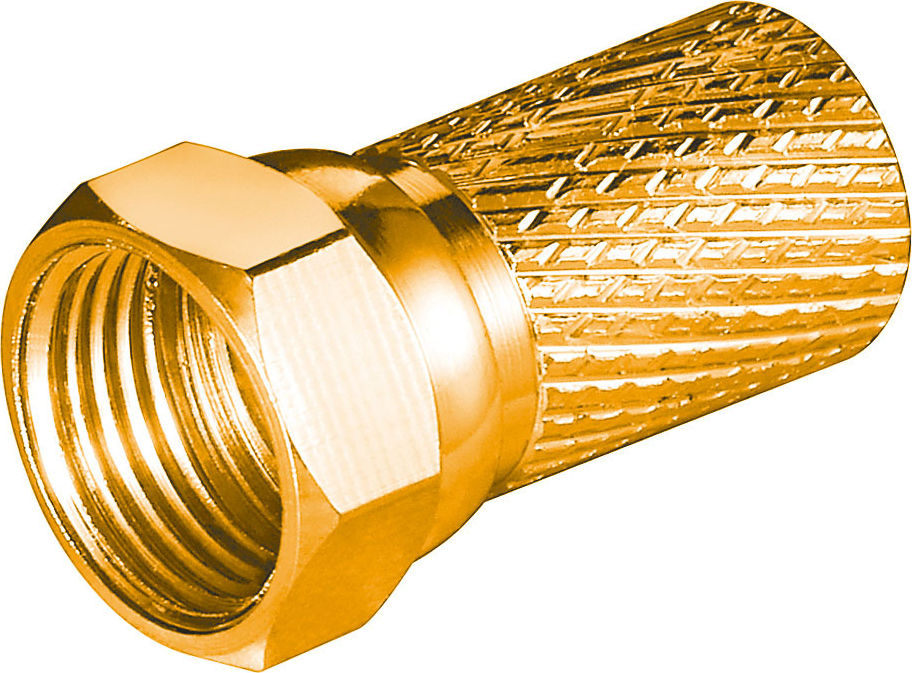Aufdreh-F-Stecker 7,0 mm, Kupfer - Kupfer-vergoldet, breite Mutter