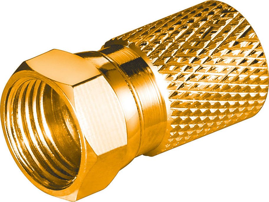 F-Stecker, Cu vergoldet, L. ca. 20mm, gr.Überwurfmutter; WEF 8.2 C F-PLUG 20mm Cu BIG NUT gold