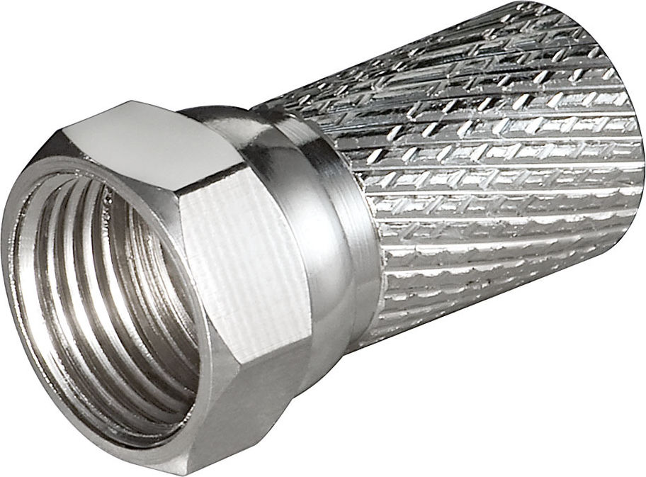 F-Stecker, Kupfer vernickelt, ca.20mm lang, große Überwurfmutter; WEF 7 C F-Plug 20mm BIG NUT