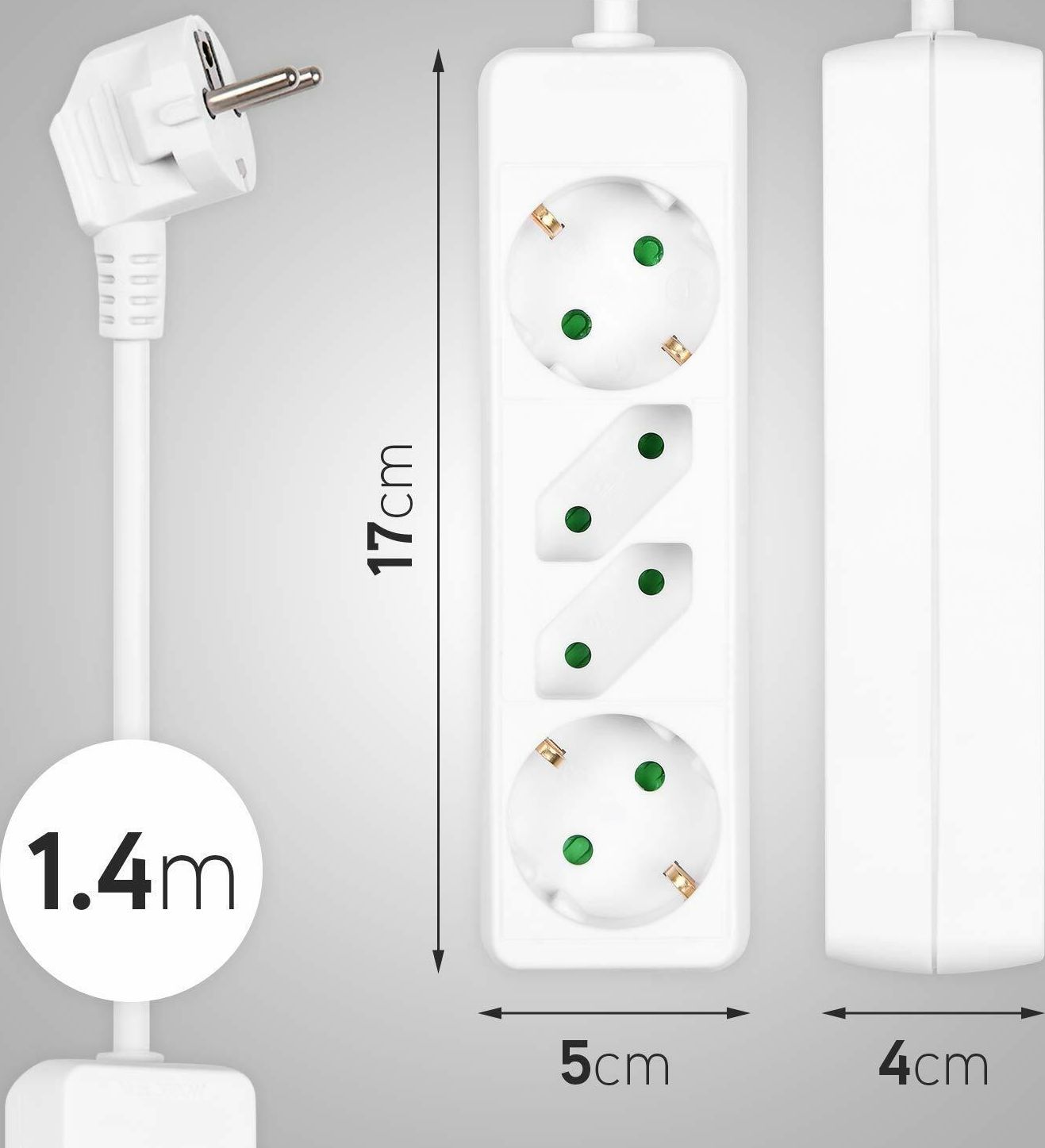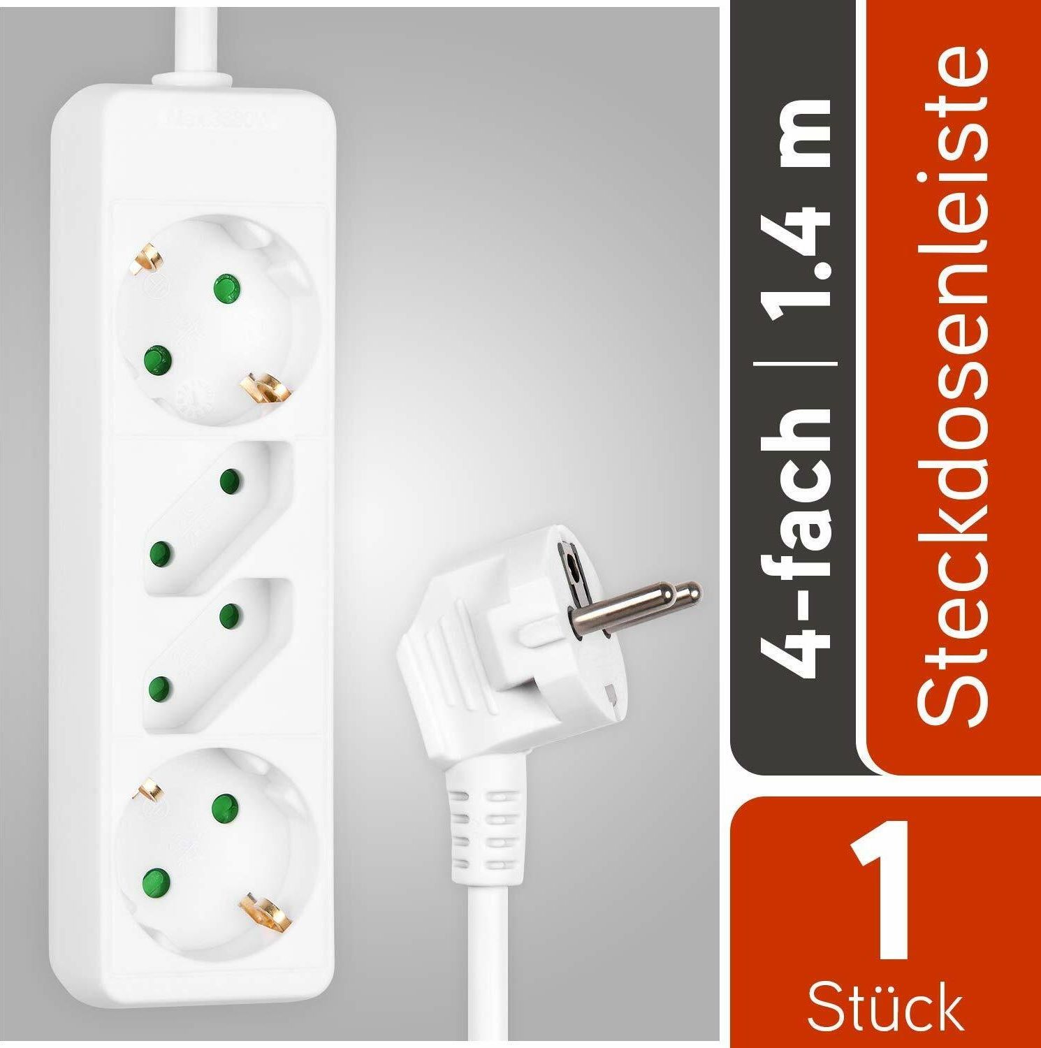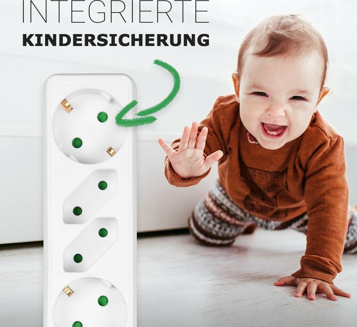 HEITECH 4-fach Tischsteckdose mit Kinderschutz, weiß