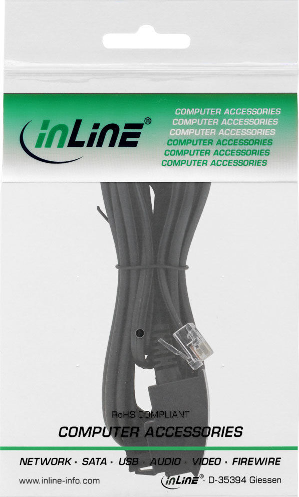 InLine TAE-F Kabel für DSL Splitter, TAE-F Stecker an Western 6/2 DEC Stecker, 2m