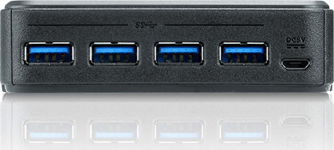 Das ATEN US234 ist ein 2-Port-USB-3.0-Peripheriefreigabegerät, dass Anwendern das Teilen von vier USB-Geräten zwischen zwei verschiedenen Computern ermöglicht. Das US234 ist USB-3.0-kompatibel und unterstützt eine Datenübertragungsrate von bis zu fünf Gbps und ist abwärtskompatibel zu USB 2.0 und USB 1.1. Es eignet sich für Geräte mit hoher Bandbreite wie z.B. USB-Dockingstationen oder HD-Kameras. Zudem verfügt das US234 auch über einen externen Remote-Port-Wähler, welcher das Desktoplayout vereinfachen und auswählen kann, welcher Computer die USB-Geräte verwenden soll. Mit dem kompakten und All-in-One-Design können Sie eine platzsparende, bequeme und produktive Arbeitsumgebung schaffen. aktiviert zwei Computer zum Teilen von vier USB-3.0-Geräten einfache Port-Auswahl über Remote-Port-Wähler für bequeme Aufstellung des Switch USB-3.0-kompatibel, unterstützt Datenübertragungsraten von bis zu fünf Gbps LEDs zeigen an, welcher Computer aktiv ist Überstromschutz Unterstützung mehrerer Plattformen: Windows, Linux und Mac Bus-Stromversorgung Micro-USB-Strombuchse für zusätzliche Stromversorgung Hot-pluggable, kein Treiber oder Software notwendig 1 x US234 2-Port-USB-3.0-Peripheriefreigabegerät, 2 x USB-3.0-Typ-B-auf-Typ-A-Kabel, 1 x Remote-Port-Wähler, 1 x Benutzeranleitung