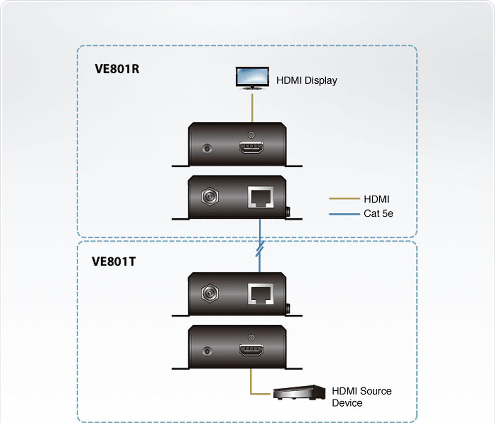 1x VE801R HDMI HDBaseT-Lite Verlängerung