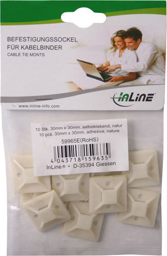InLine Befestigungssockel für Kabelbinder 30x30mm selbstklebend natur 10 Stk