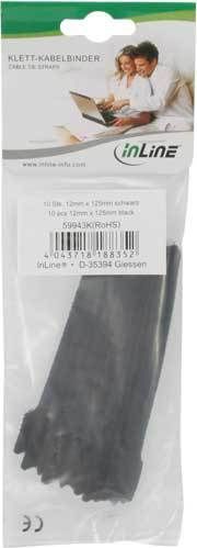InLine® Kabelbinder 12x330mm, Klett-Verschluss, 10er, schwarz. Die Inline® Klettkabelbinder finden in vielen Bereichen Anwendung. Sie sind schnell und einfach per Hand anzubringen und auch sehr leicht wieder zu lösen. Besonders empfehlenswert, da Sie wiederverwendbar sind und zudem einen enormen Halt bieten. Widerstandsfähig gegen Seewasser, Öle und Fette.