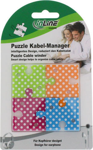 InLine Kabelbinder Puzzle, für Headsetkabel etc., 4er Pack, bunt