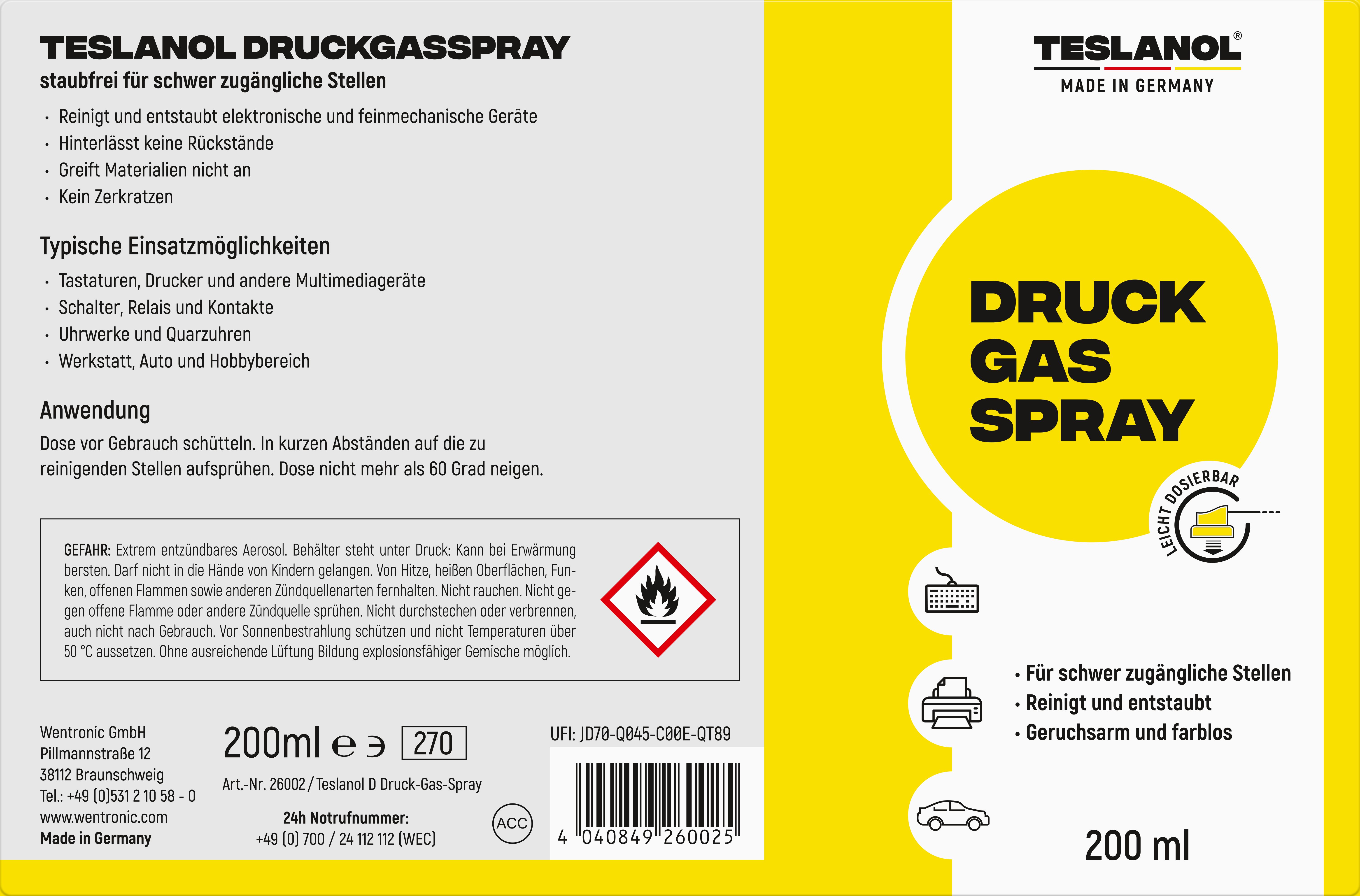 TESLANOL D Druckgasspray Druck-Gas-Spray 200 ml