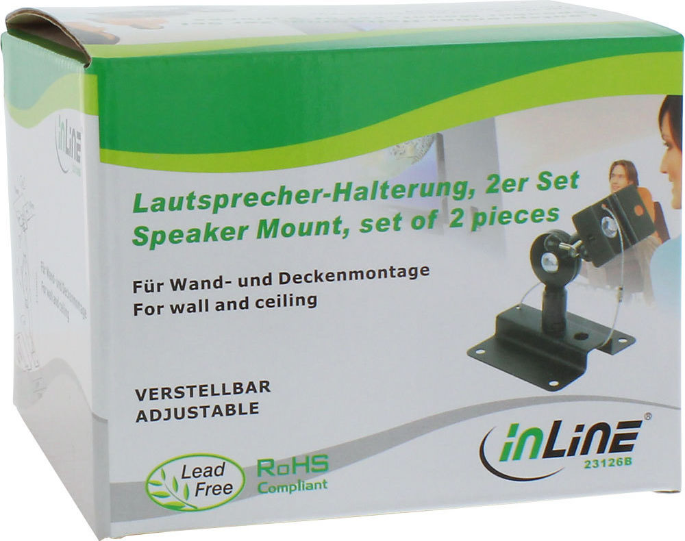 InLine Lautsprecher Wandhalterung bis 15kg, 2er Set, schwarz