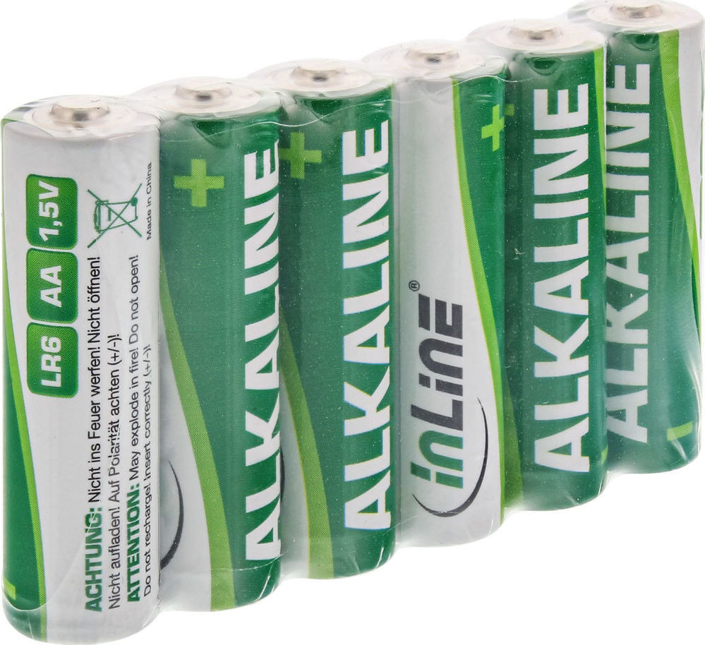 InLine® Alkaline High Energy Batterie, Mignon (AA), 10er Blister. "HIGH ENERGY" steht für Überdurchschnittliche Energie AA Mignon LR6 Kapazität: 1.700mAh liefert konstante und zuverlaessige Energie Z.B. fuer motorisiertes Spielzeug, Fernbedienung, Wanduhren, uvm. Anwendungsempfehlungen auf der Verpackung In praktischer PappschachtelInLine® Alkaline High Energy Batterie, Mignon (AA), 10er Blister.