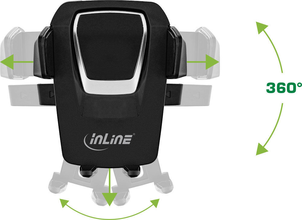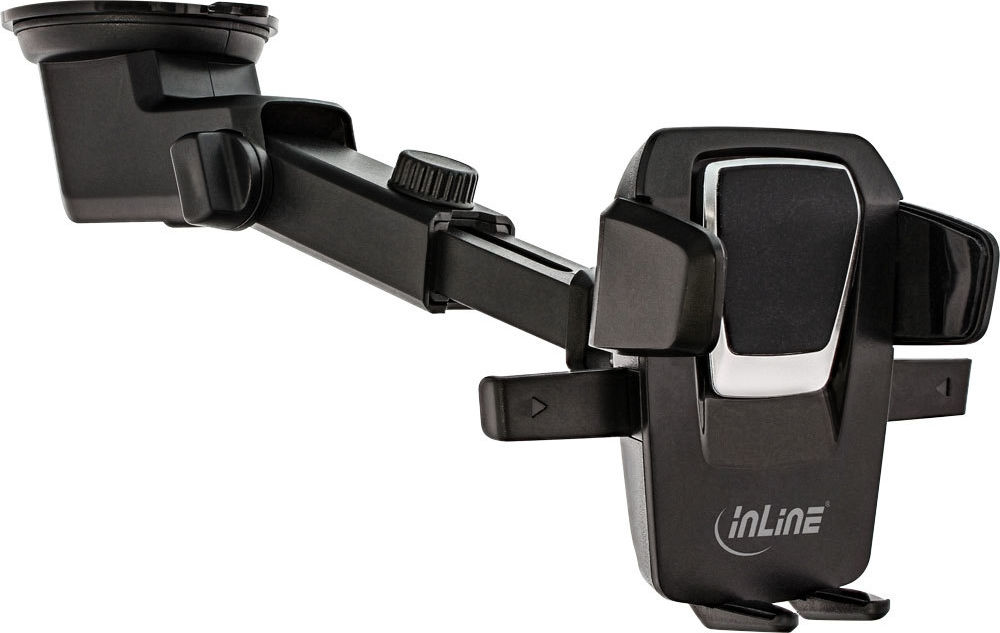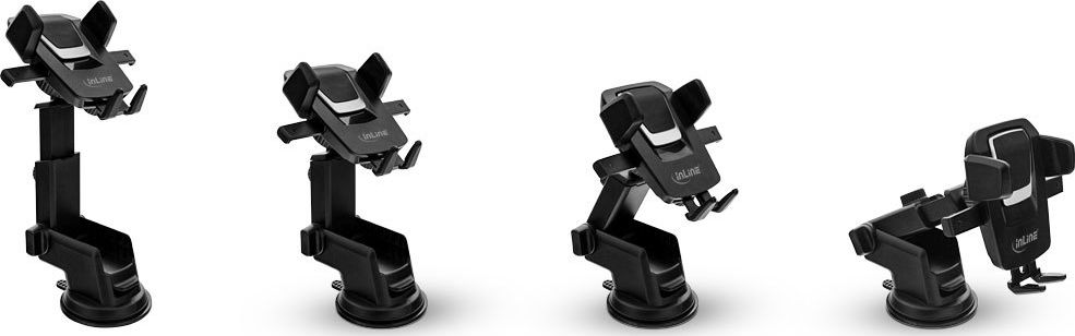 Die InLine® Smartphone-Halterung mit Saugnapf für die Windschutzscheibe oder den Schreibtisch ermöglicht die sichere Bedienung im Büro oder Fahrzeug. Dank der flexiblen Gelenke lässt sich das Smartphone optimal ausrichten. Variable Haltearme (5,5 - 8,9 cm Breite) mit Schutzpads Saugnapf für sicheren Halt an der Windschutzcheibe oder auf dem Schreibtisch Ausziehbarer und verstellbarer Hals zur optimalen Ausrichtung Kopfteil 360° drehbar für maximale FlexibilitätDie InLine® Smartphone-Halterung mit Saugnapf für die Windschutzscheibe oder den Schreibtisch ermöglicht die sichere Bedienung im Büro oder Fahrzeug. Dank der flexiblen Gelenke lässt sich das Smartphone optimal ausrichten.