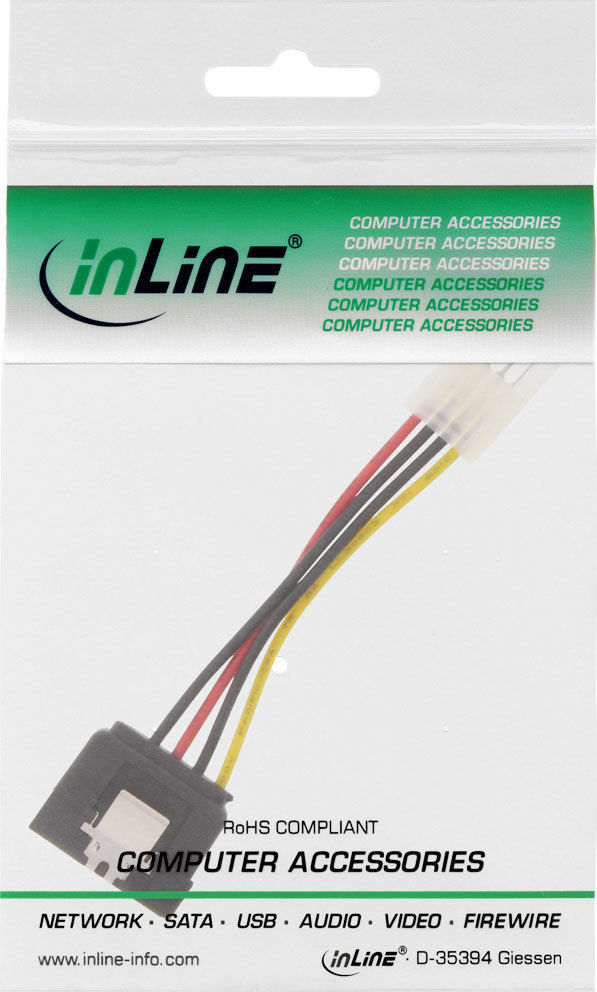 InLine SATA Stromadapterkabel, 1x 8,89cm (3,5") Buchse an 15pol SATA Stecker mit Lasche, 0,15m