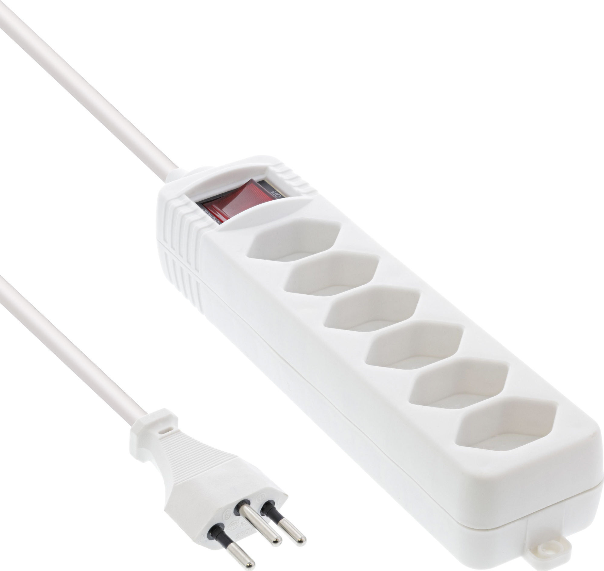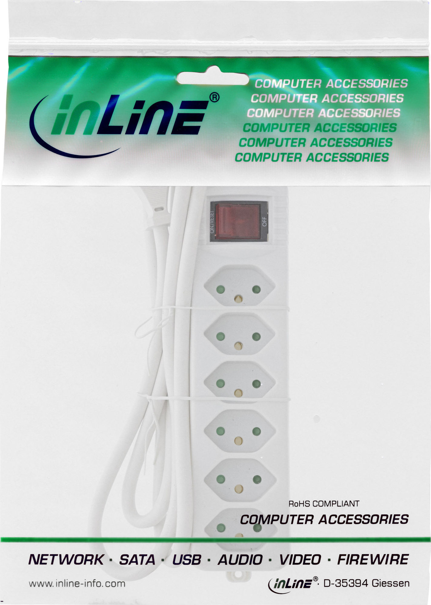 InLine Steckdosenleiste SCHWEIZ, 6-fach, mit Schalter, 1,5m, weiß