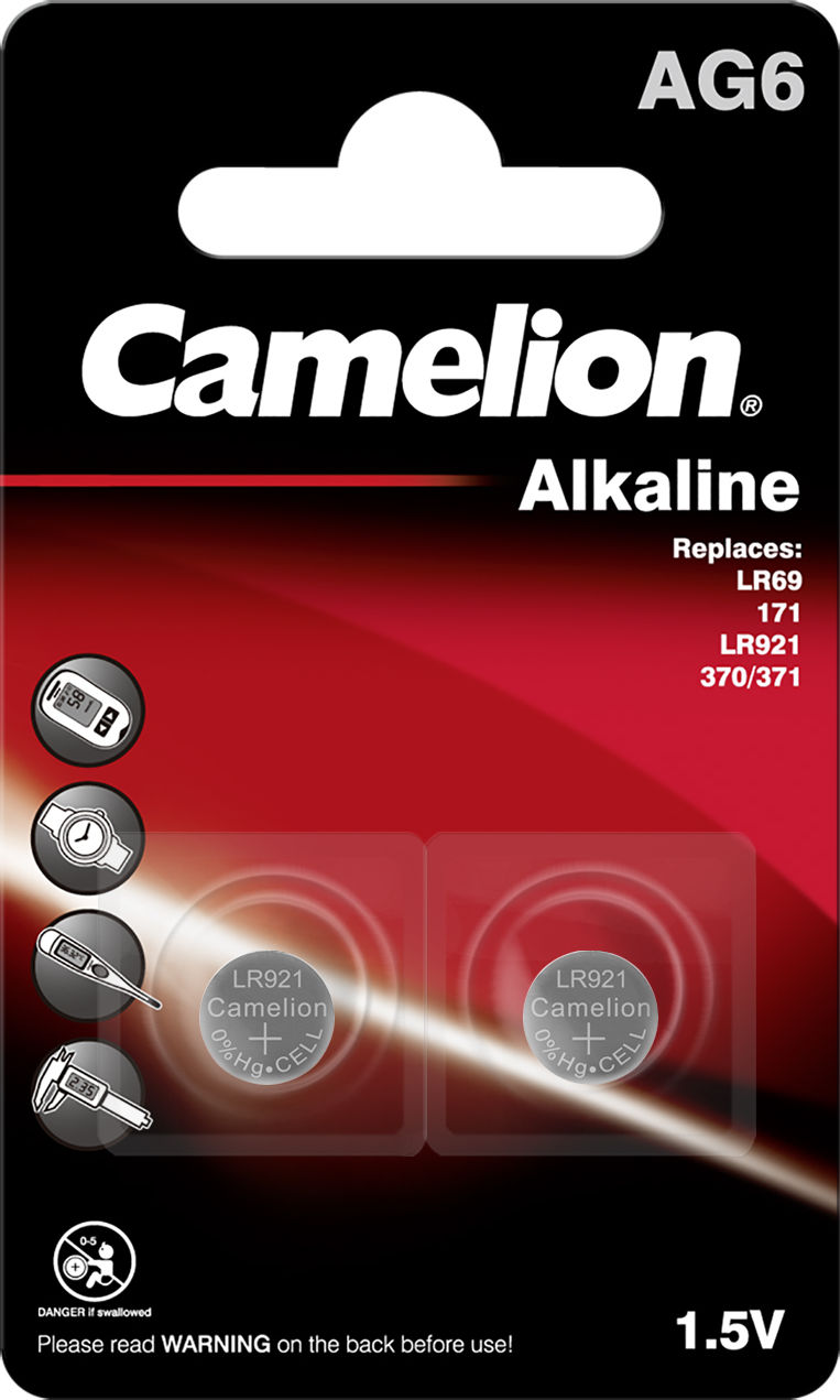 CAMELION ALKALINE 1,5V KNOPFZELLE AG6 / LR69 / LR921 / 371 / 2er Blister