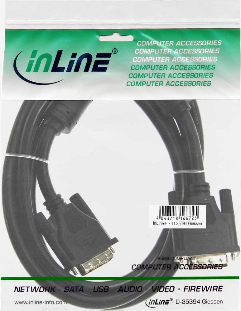 DVI-D Kabel, InLine, digital 18+1 St/St, Single Link, 2 Ferritte, 10m