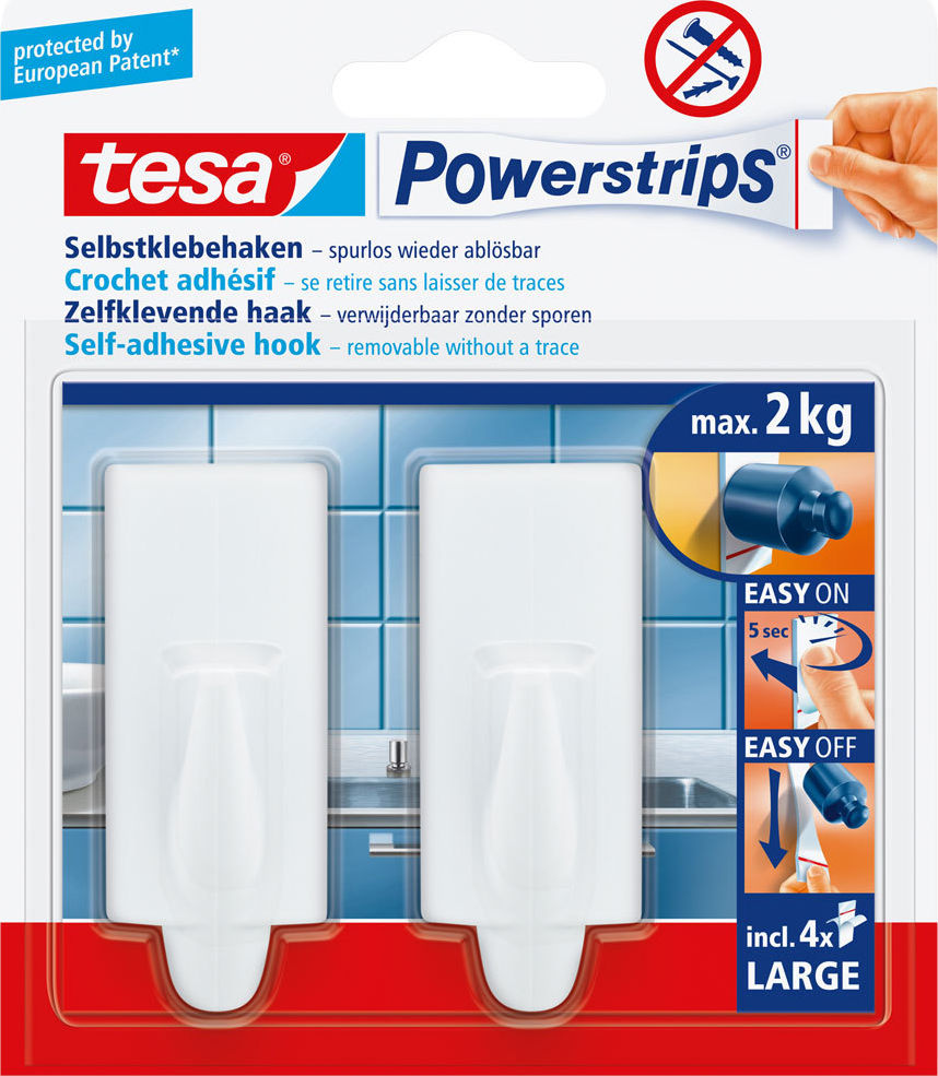 tesa Powerstrips-Haken, large trend, 2er-Pack, weiß